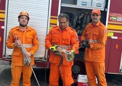 Jiboia é capturada em veículo pelo Corpo de Bombeiros em Lagarto